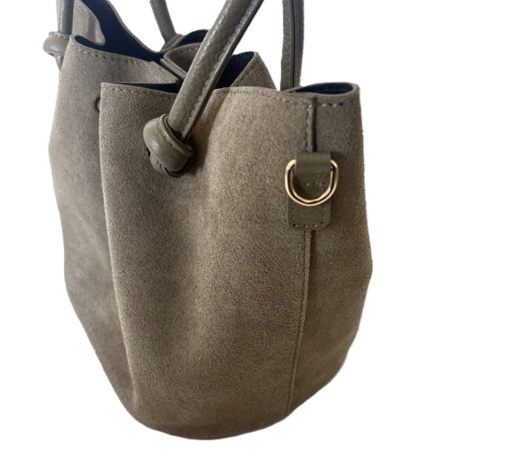 These new "knot" totes are the perfect in-between size bag for all your seasonal outings. Has a removable pouch, adjustable crossbody strap and a flat base. Gold hardware.