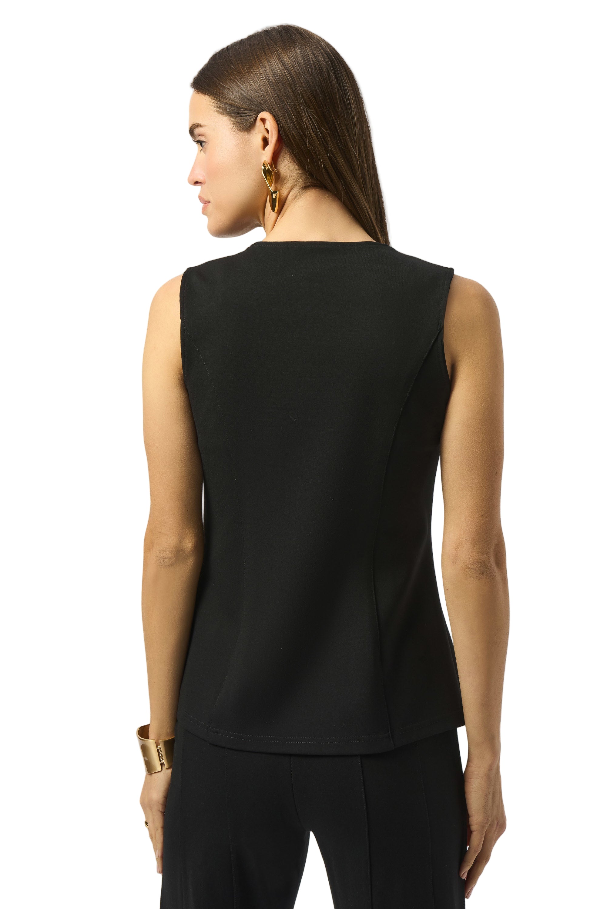 Elevate your style with this chic heavy knit vest. The sleeveless fitted silhouette gives character and poise to any ensemble. Cutaway details at hem and decorative princess line buttons adorn the garment, adding to its remarkable polished look.