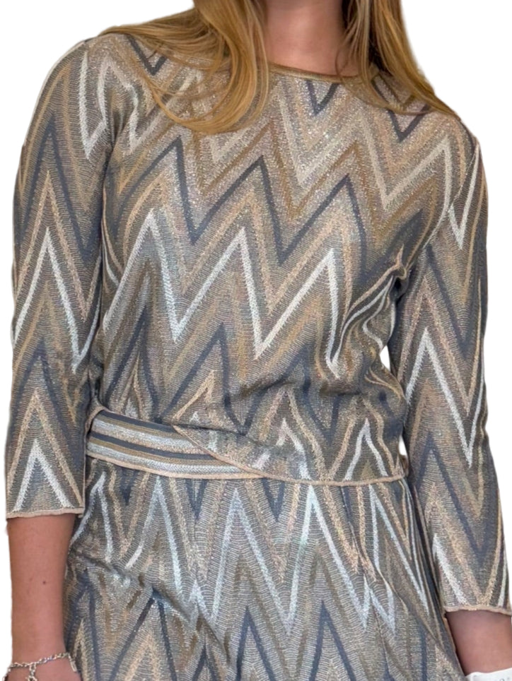 Tessere Metallic Chevron Sweater- Silver