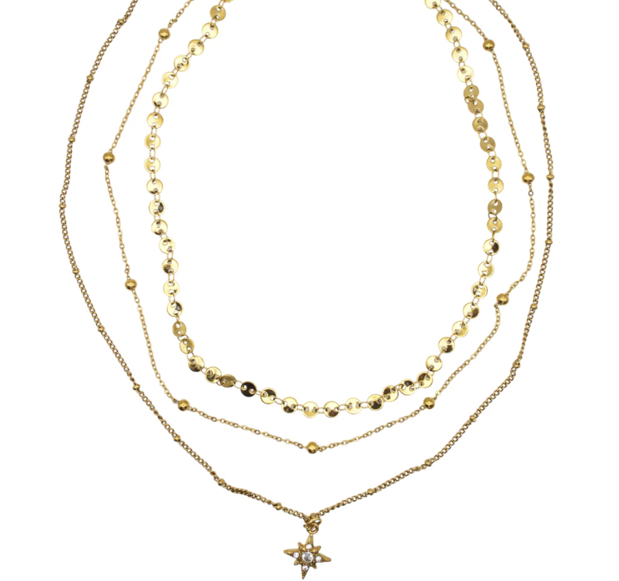 Takes the guesswork out of stacking with three perfectly balanced chains joined into one easy-to-wear piece. Delicately beaded for subtle shine and dimension, it gives you that curated, layered look without the tangle. It’s ready to wear with anything–just clasp and go!