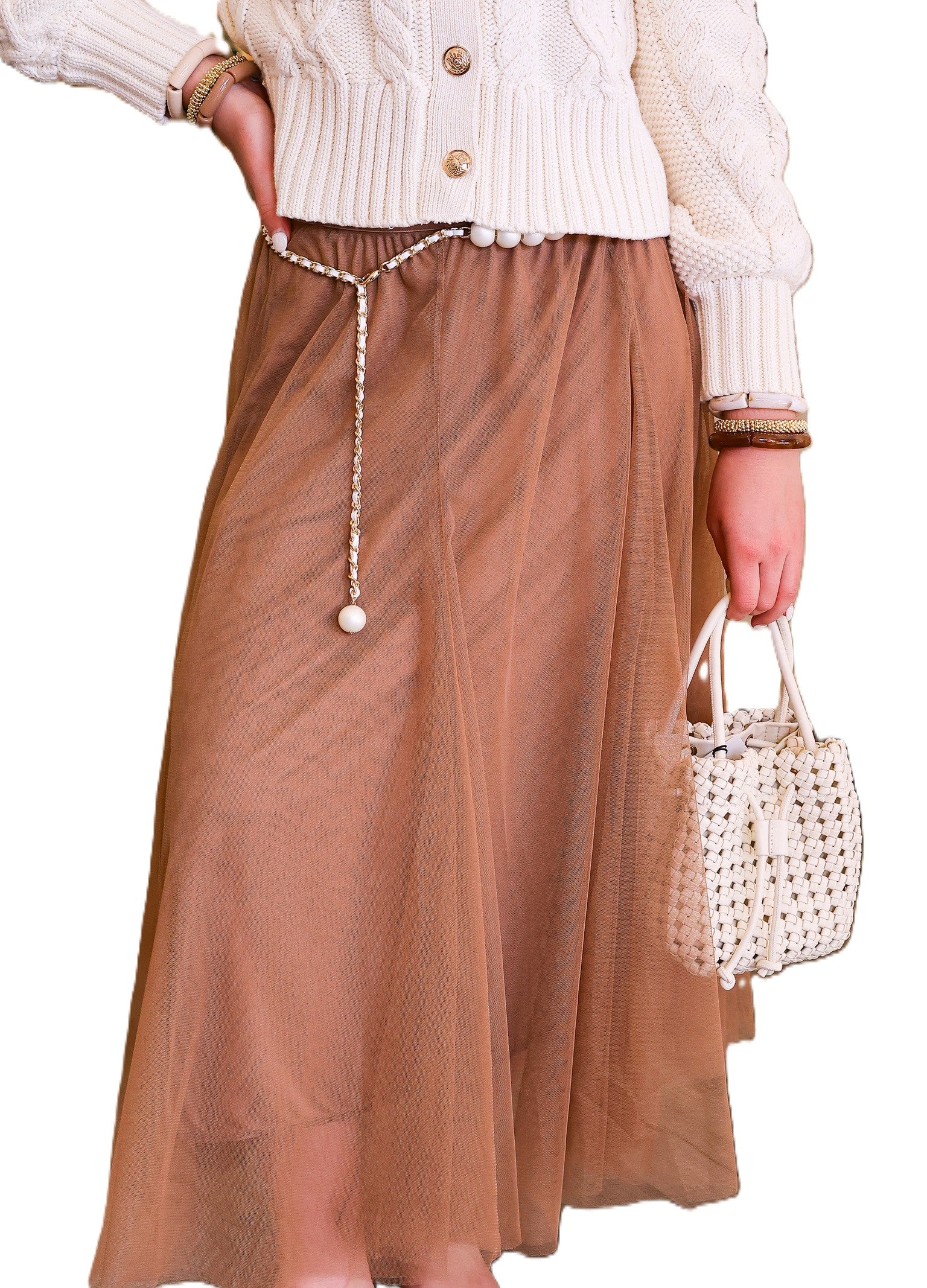 Tulle Midi Skirt - Taupe
