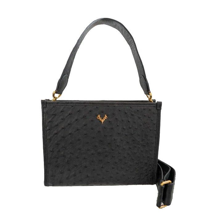 Carrie Ostrich Convertible Clutch- Black