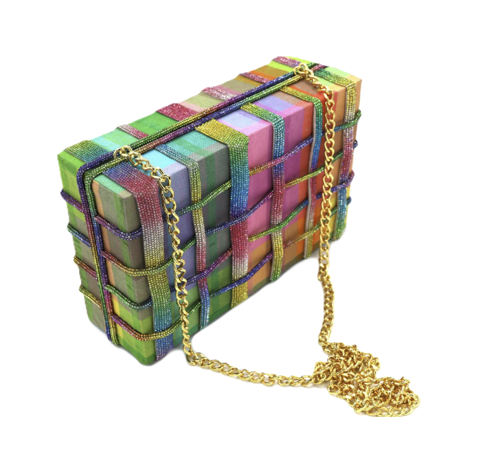 Bring your own version of Emily in Paris and brighten up any room you walk into with the 2023 version of our Etoile briefcase. She’s handcrafted with crystal lace in the colors of the rainbow on gingham cotton fabric.
