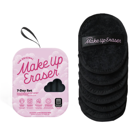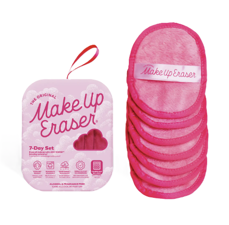 Includes 7 Daily Cloths, 5in x 4in. + laundry bag   Erase all makeup with JUST WATER™ including waterproof. Our patented, water-activated makeup remover uses cloud-soft fibers to gently & easily remove all cosmetics & sunscreen from pores. 2 in 1 benefit: one side removes makeup & one side exfoliates.  ✓ Dermatologist Recommended ✓ SmartErase™ Technology ✓ Reusable & machine washable (300X) ✓ Great for everyday & professional makeup removal ✓ Eco-friendly & simplified skincare  The Original MakeUp Eraser® removes makeup 2.5X better than the leading makeup wipe is non-irritating & non-drying, making it perfect for sensitive skin. It's safe for eyelash extensions & oil-free, perfecting your sustainable beauty routine.