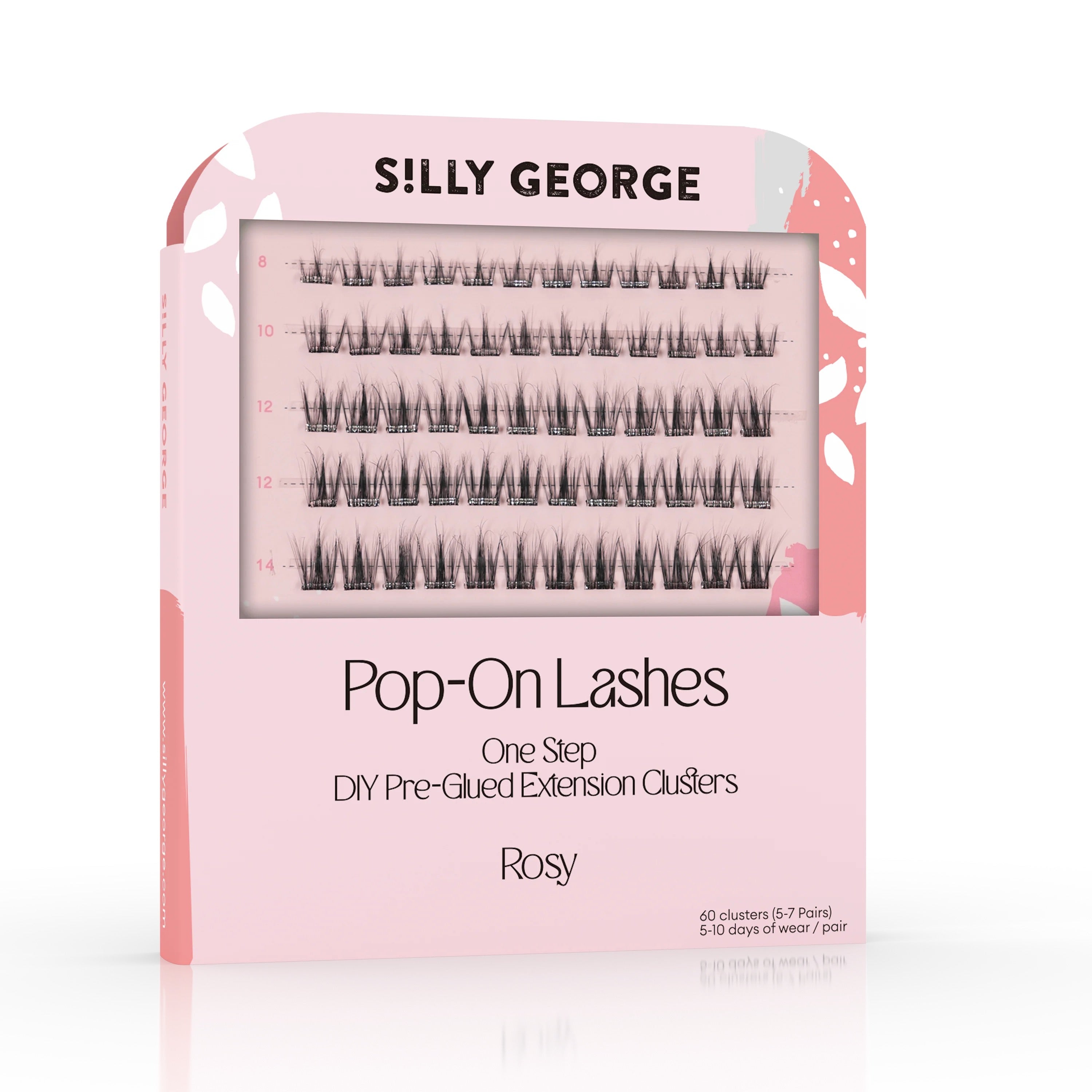 The Silly George Pop-On lashes™ are lashes like you’ve never seen before. This new technology features a pre-glued pad on each cluster for incredible hold. This means no need for additional tricky & messy bond/seal products. These Pop-On Lashes™ are just that: clusters that you simply pick up from the box and "pop" directly onto the waterline underneath your natural lashes. The box comes with a QR code that links to an application video, holding your hand through your first application, ensuring you perfect your technique and make the most of these lashes.