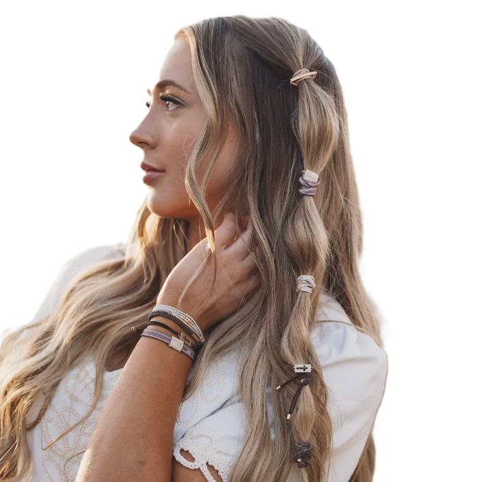 The Faith set is a gentle reminder to trust, believe, and stay grounded in what matters most. These 5 hair tie bracelets showcase warm neutral tones in tan and brown, accented with gold beads. A delicate gold cross charm adds meaningful simplicity, making this set a beautiful symbol of strength, grace, and unwavering faith.