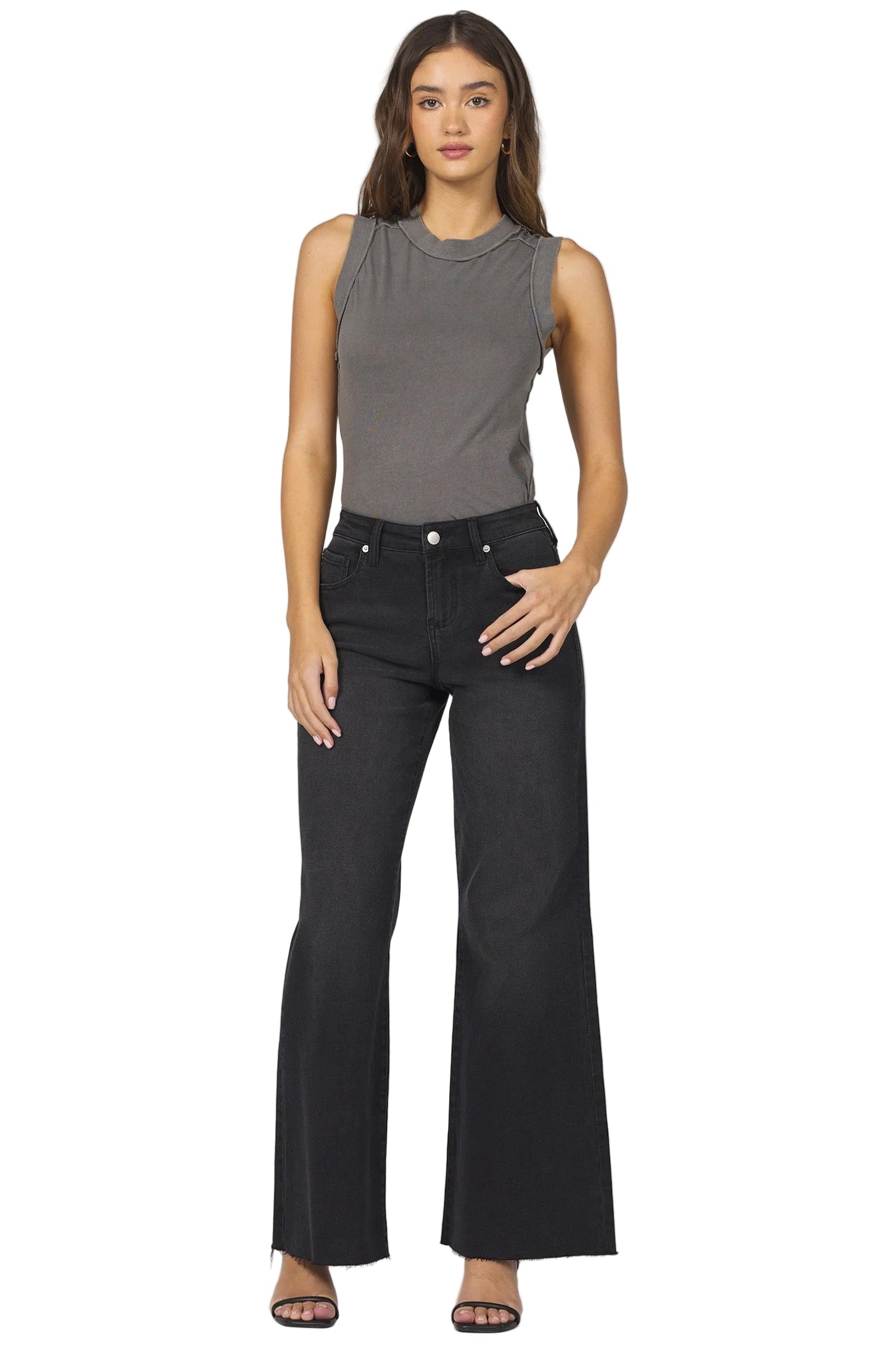 Perfect your ensemble with the Micah wide leg jean in Jetset wash, with its mid-rise fit and cut-off hem.