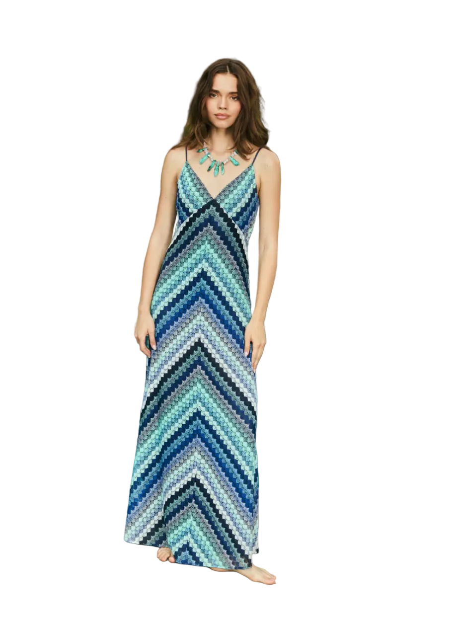 From Beach to Bar: Throw this dress in your suitcase for every vacation you have planned! Our best-selling zigzag knit fabric is back in a swoon-worthy maxi dress. Bias cut to hug you in all the right places, featuring a V-neckline and adjustable spaghetti straps. Center back zipper closure and fully lined.