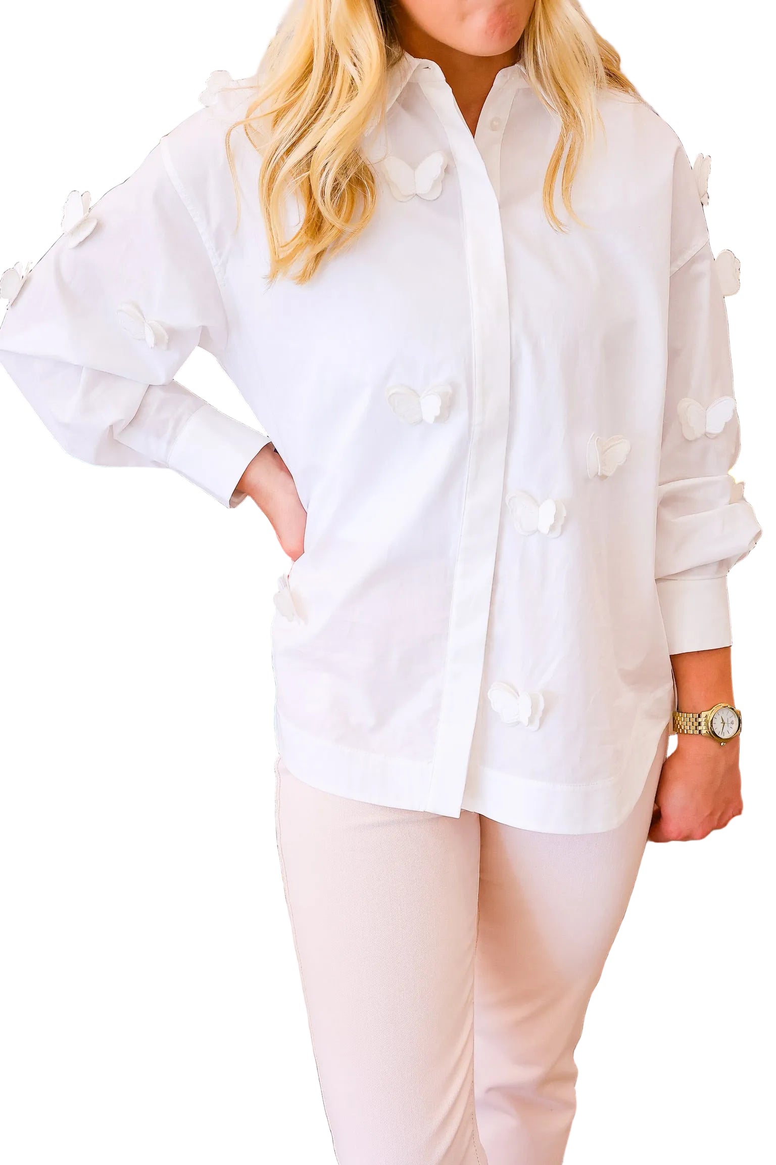 Elevate your wardrobe with this charming Butterflies Blouse from Farm Rio. Crafted in a soft off-white hue, this piece features delicate butterfly motifs that bring whimsy and sophistication to any outfit. Perfect for layering or wearing solo, it's an ideal choice for casual days or dressed-up occasions. The thoughtful design celebrates nature-inspired style while maintaining timeless elegance. A versatile staple that effortlessly transitions from season to season.