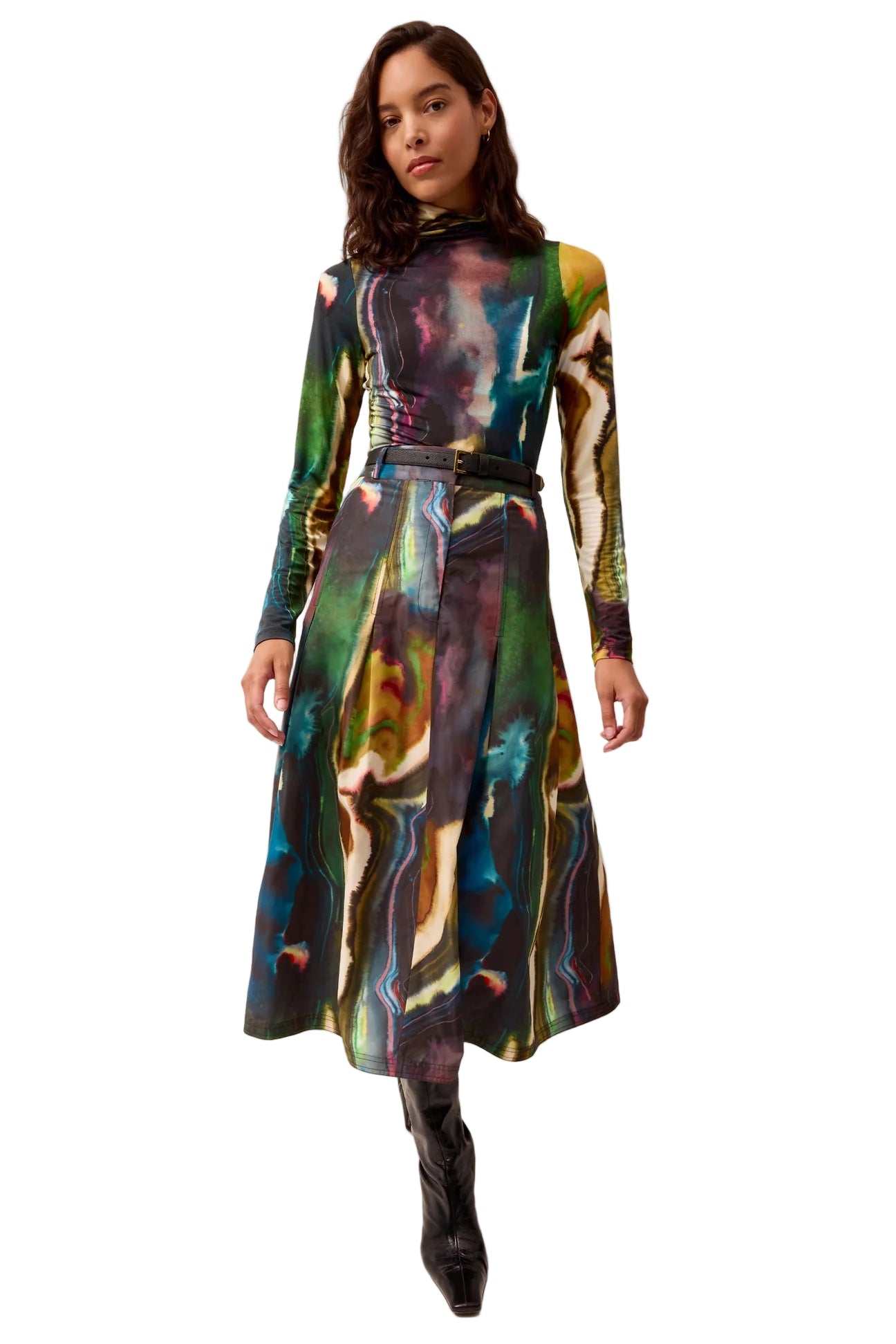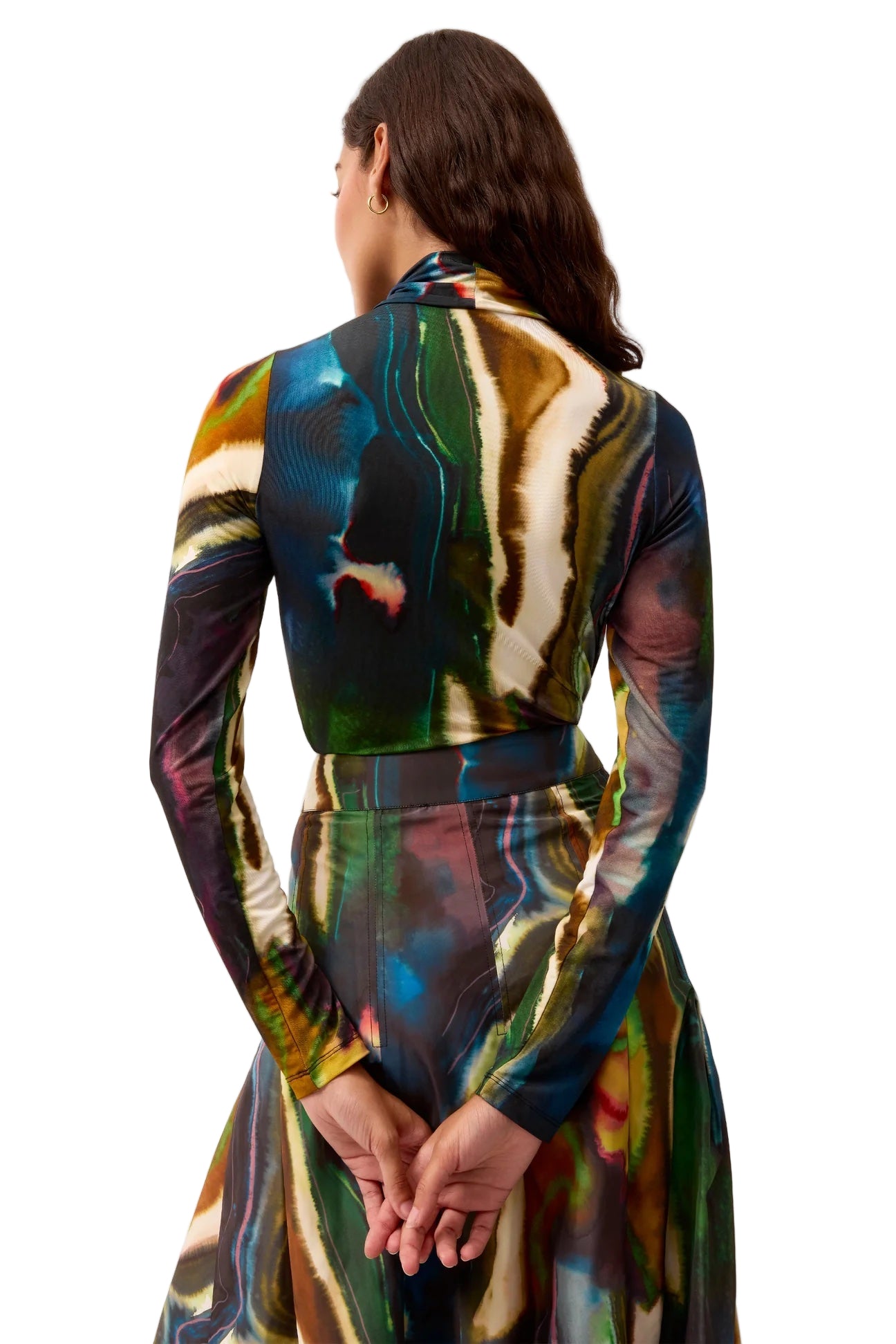 Cut from a sumptuous jersey knit, Marie Oliver’s figure-skimming Eloise top returns in Delta, a striated swirl of color in a moody seasonal palette. Pair Eloise with our Faith skirt for a stylish matching moment.