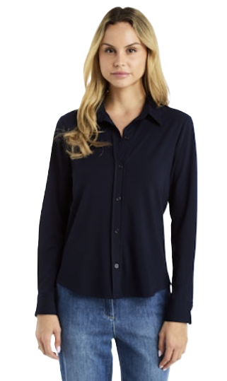 The Sammi Top is a versatile soft button-up shirt from Drew, available in classic navy and white. Perfect for layering or wearing solo, this piece combines comfort with timeless style. The relaxed fit and quality fabric make it an essential addition to any wardrobe, ideal for casual outings or dressed-up occasions.